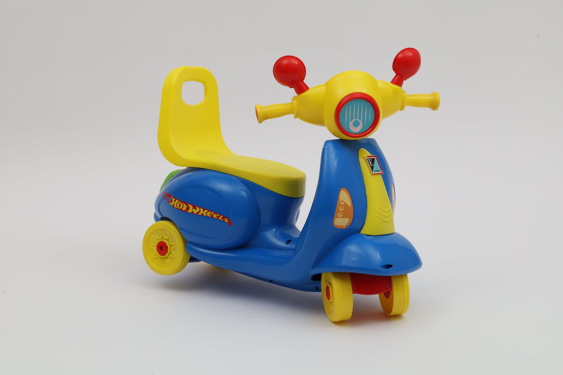 Ride on in style with the Evergreen Vespa Hotwheels Bike! This manual bike not only provides a fun and comfortable ride, but also promotes gross motor skills and hand-eye coordination.